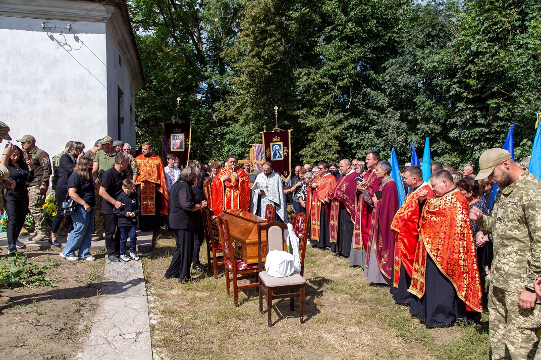 Останню шану захиснику, який обороняючи Україну від російських окупантів на Донеччині пожертвував найцінніше – власне життя, прийшли віддати рідні, сусіди, односельчани, побратими, військовослужбовці та усі небайдужі люди, які разом з сім’єю Героя розділяють їхнє страшне горе.