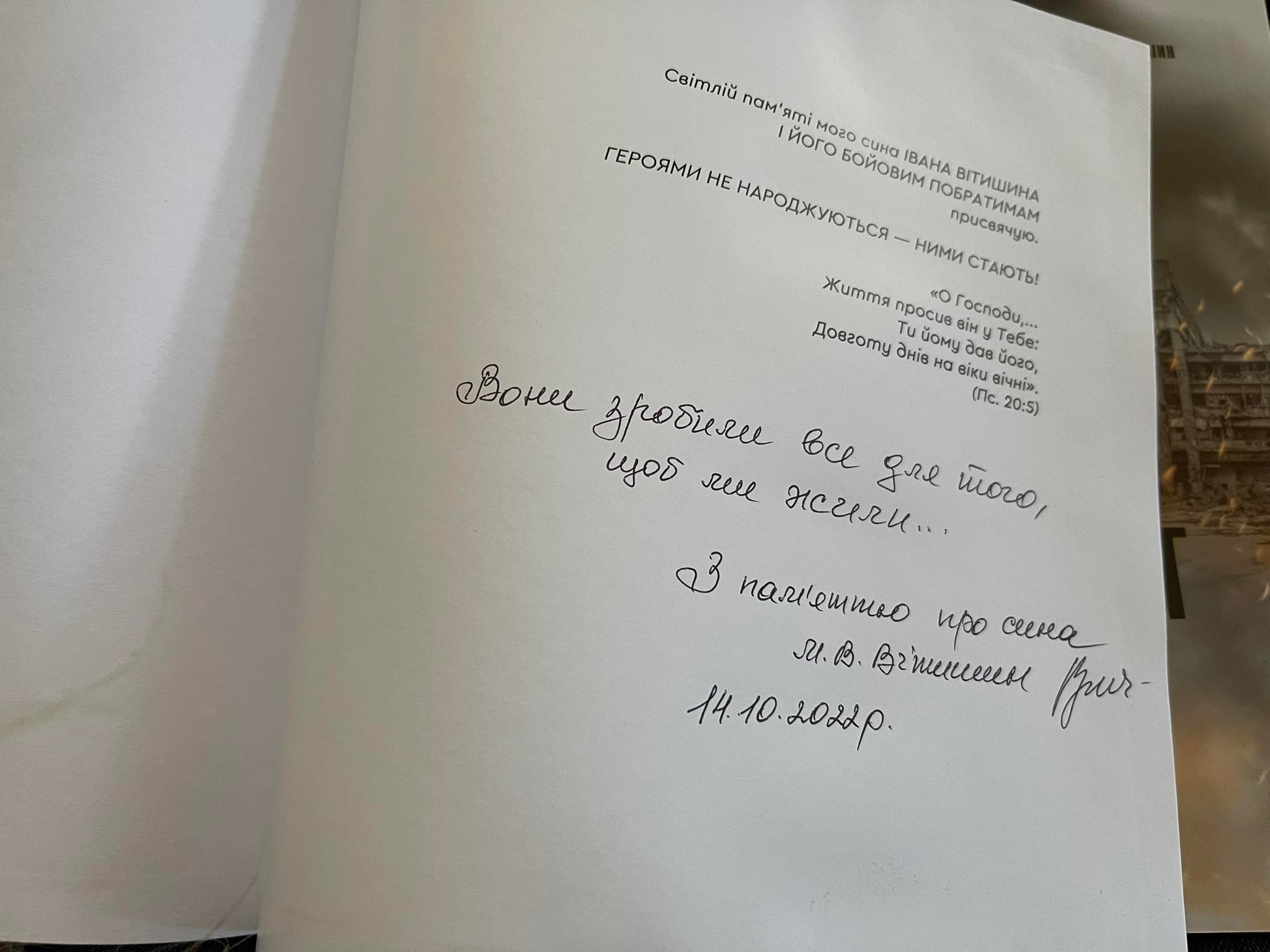 «Іван Вітишин житиме у наших серцях, у цій книжці… Це саме те, чого хотіла мама – розповісти про свого сина. Дана книга буде у кожній бібліотеці, щоб усі охочі змогли прийти і взяти її, щоб прочитати. Це дуже важливо», - наголосила Марія Галайко.